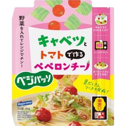 にんにくの風味と唐辛子とブラックペッパーの辛味がおいしいペペロンチーノ。キャベツとトマトを入れて電子レンジでチンするだけで具だくさんパスタソースの出来上がります。