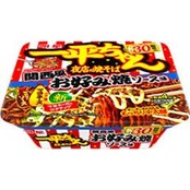 商品詳細:油揚げめん(小麦粉(国内製造),植物油脂,食塩,ソース,オニオン粉末),ソース(マヨネーズ,糖類,ソース,豚脂,植物油脂,トマトケチャップ,香味油,食塩,たん白加水分解物,かつおぶしエキス,トマトペースト,デーツ果汁,デミグラスソース,香味調味料,香辛料,昆布エキス,ポークエキス,かつおエキス,醸造酢),かやく(キャベツ),ふりかけ(紅しょうが,混合削りぶし(かつおのふし,いわしの煮干し,さばのふし),アオサ)/加工デンプン,カラメル色素,調味料(アミノ酸等),炭酸カルシウム,かんすい,香料,増粘剤(加工デンプン,増粘多糖類),酸味料,酸化防止剤(ビタミンE),香辛料抽出物,炭酸マグネシウム,カロチノイド色素,ビタミンB2,ビタミンB1,(一部に卵・乳成分・小麦・えび・いか・オレンジ・さば・大豆・鶏肉・豚肉・もも・りんごを含む)